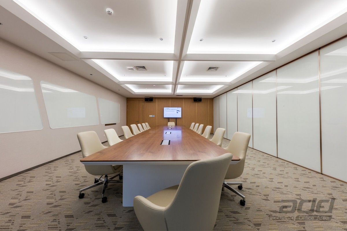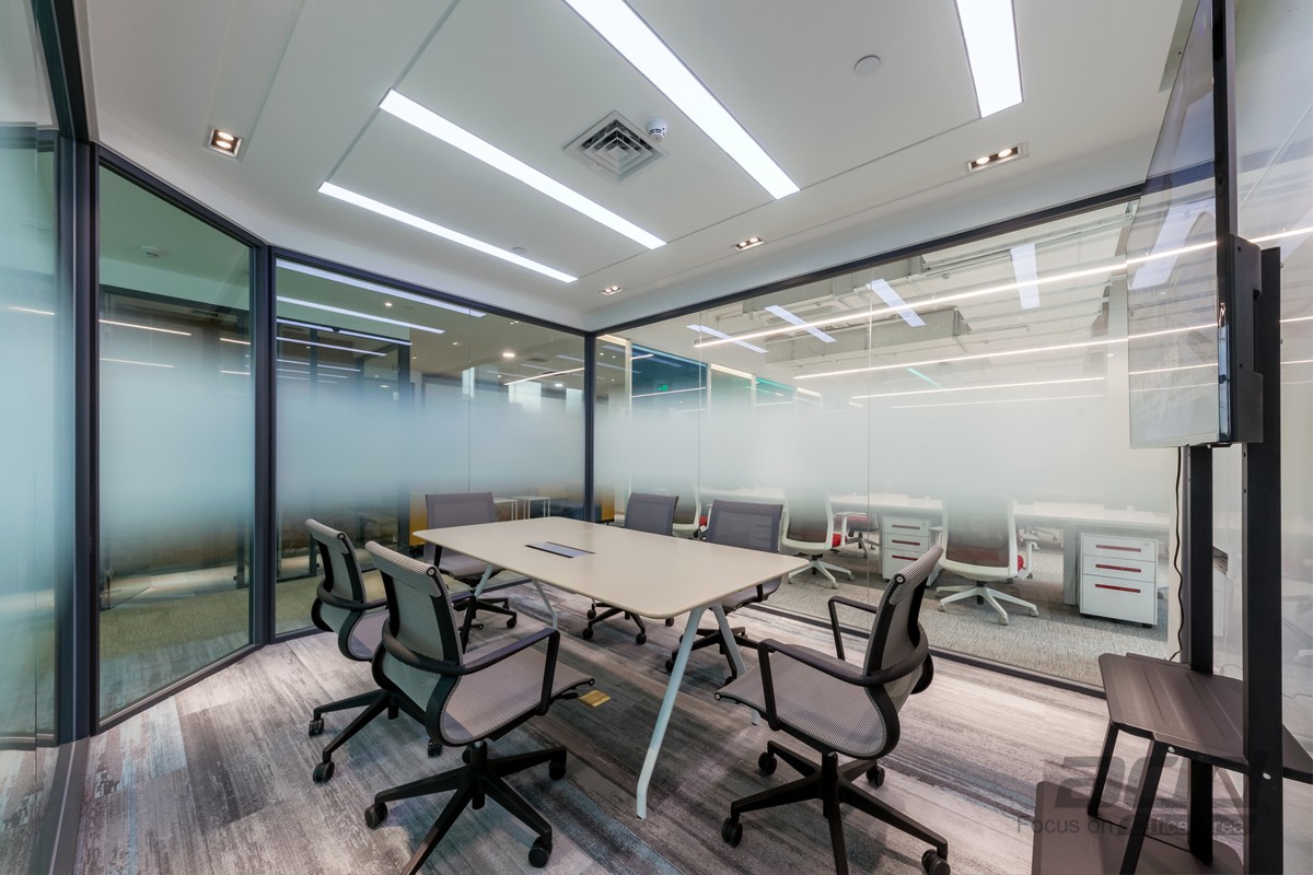 項(xiàng)目最大的挑戰(zhàn)是打造一個(gè)復(fù)雜和自由流動(dòng)的空間布局:將大廳和茶水區(qū)放置于同一軸線,以律師事務(wù)所的日常接待習(xí)慣為出發(fā)點(diǎn)配合動(dòng)線布置和視線聯(lián)接,既能夠?qū)崿F(xiàn)相對(duì)自由的環(huán)境,也能方便人員之間的溝通與交流,使空間關(guān)系更為交融和合理。
